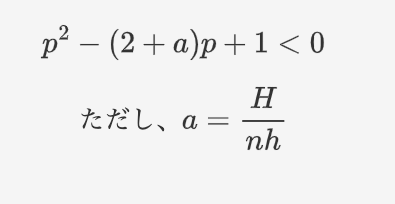 プラスの方は「1+(その他 > 0)」の形になり、pが1以下であることと反するので今回の答えではありません。